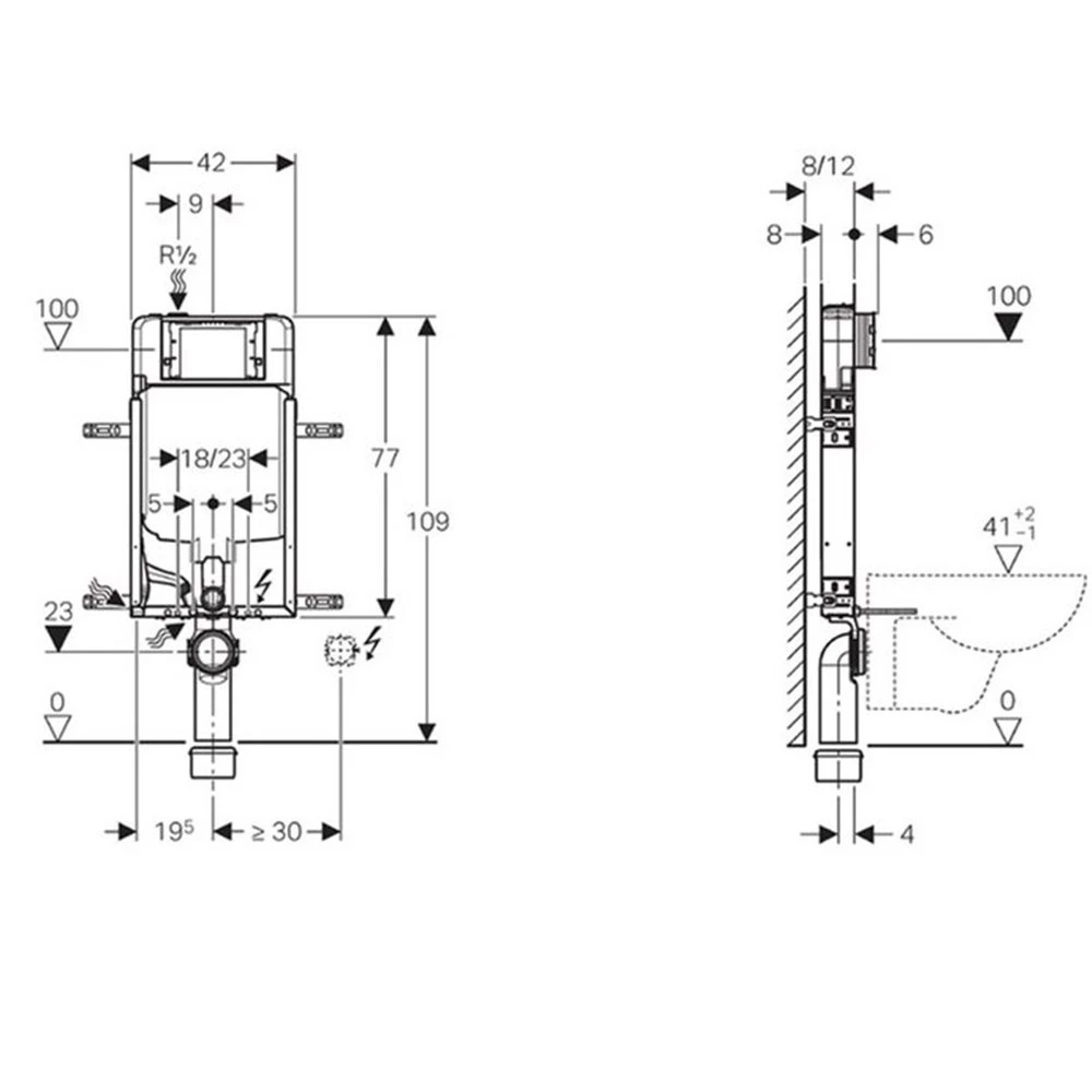 Καζανάκι εντοιχισμού (8 cm – Μονό τούβλο) GEBERIT SIGMA LINE 110.794.00.1 (Αντικαθιστά τους κωδικούς: 110.772.001 / 110.150.001)