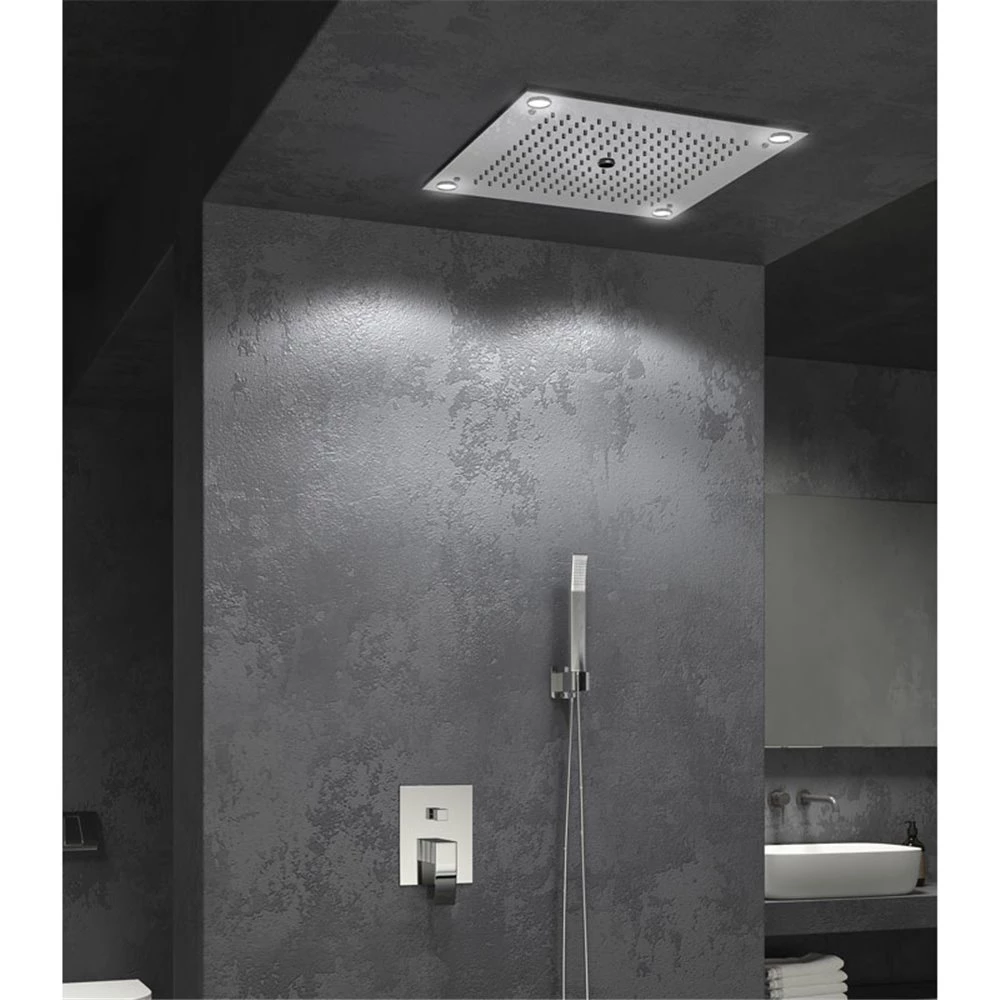 Η εντοιχιζόμενη κεφαλή ντους οροφής είναι ένα νέο προϊόν με κομψό σχεδιασμό και ενσωματωμένο φωτισμό LED κατάλληλο για να τονίσει το μπάνιο σας. Είναι κατασκευασμένη από ανοξείδωτο ατσάλι και φέρει υψηλή ποιότητα επινικέλωσης.