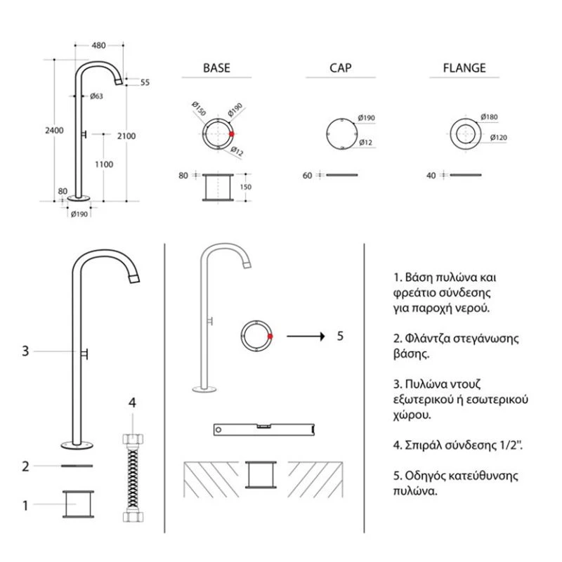 Κολώνα σταθερής ντουζιέρας εξωτερικού χώρου – Πισίνας KARAG PYLON INOX
