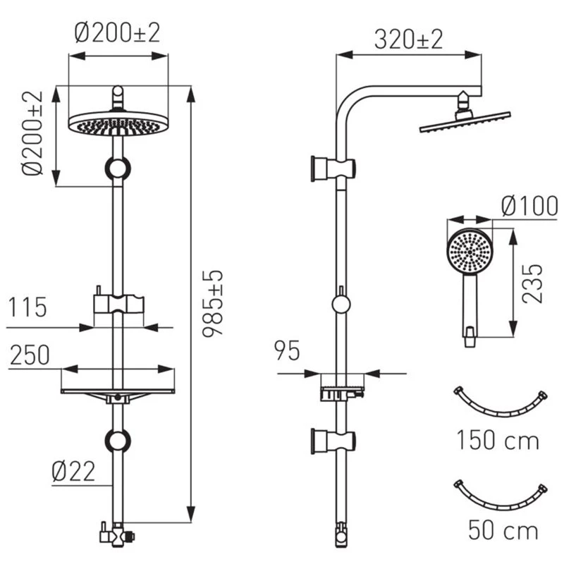 - Κεφαλή ντους ρυθμιζόμενης κατεύθυνσης Ø20 cm