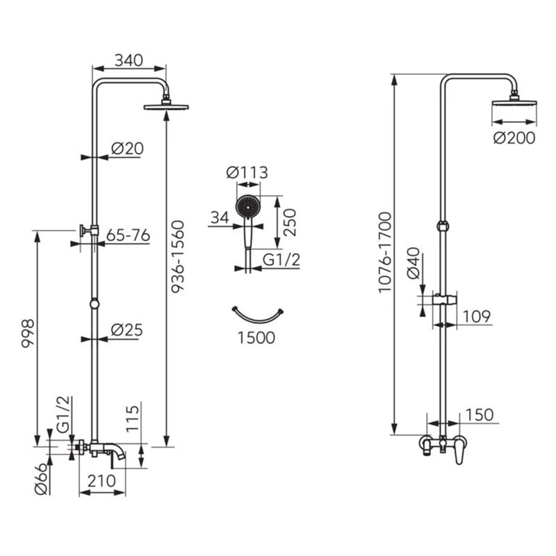 Κολόνα σταθερού ντους FERRO ALGEO NP78-BAG13U