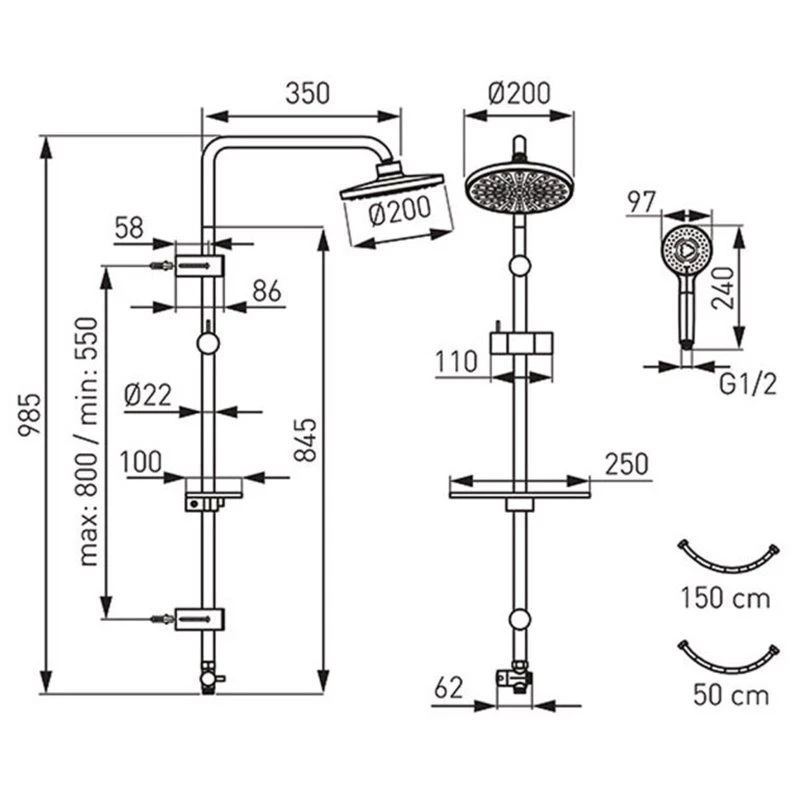 Κολόνα σταθερού ντους FERRO RONDO BLACK NP21-BL