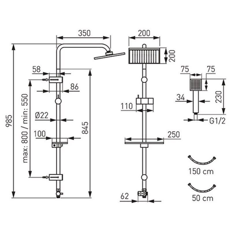 - Κώδωνας ντους διαστάσεων 200 x 200 mm
