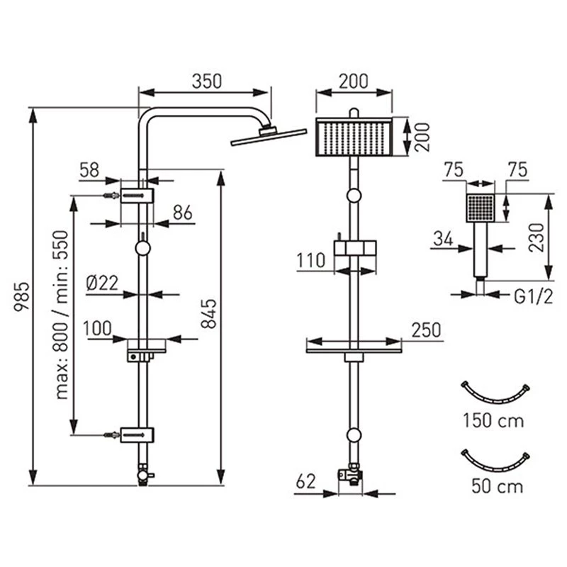- Διάσταση κεφαλής ντους 20x20cm