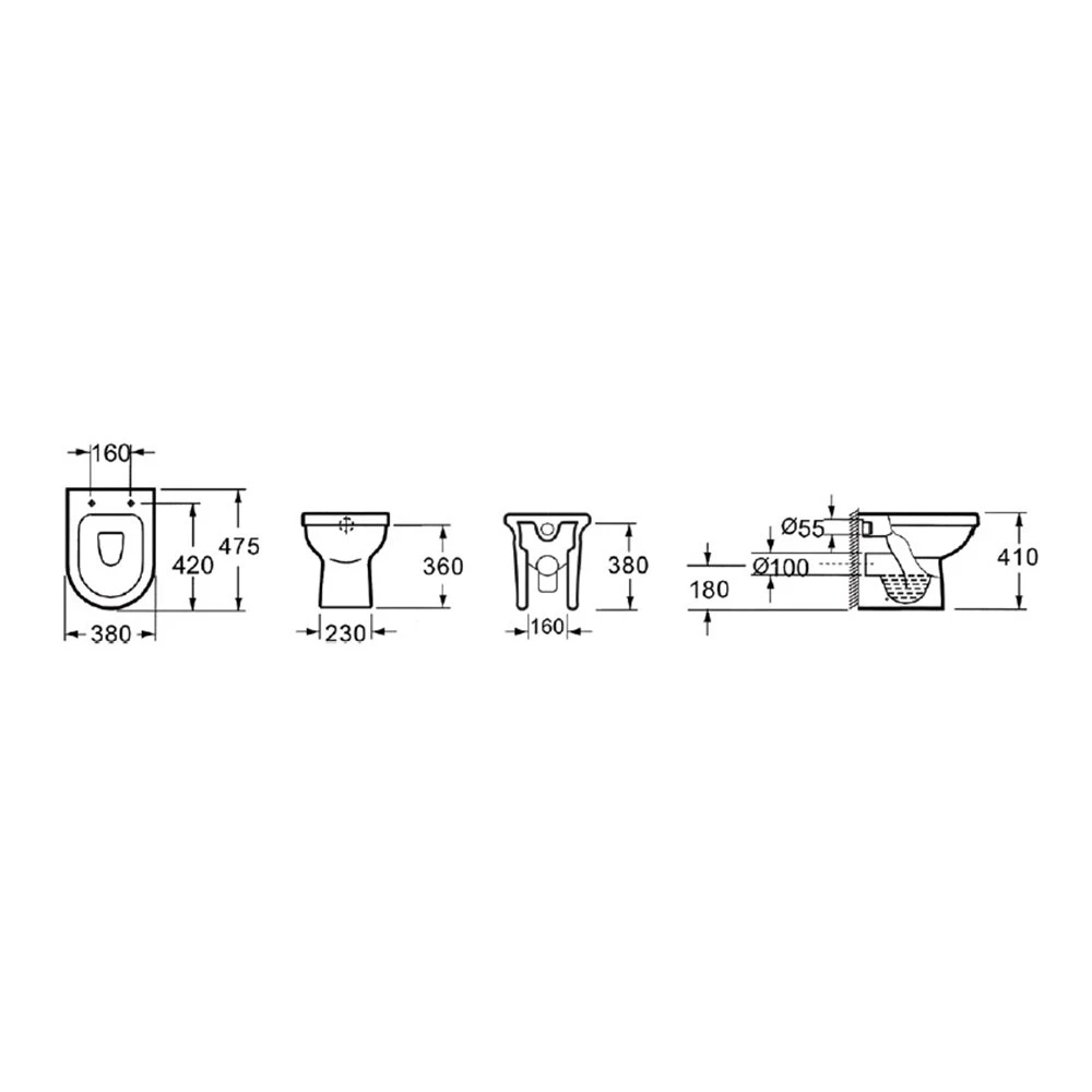 Λεκάνη δαπέδου BTW KARAG PAROS MFZ 38D 47,5x38cm πίσω σιφώνι με κάλλυμα UF Soft Close