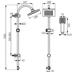 - Οριζόντια περιστρεφόμενο μπράτσο ντους 450 mm