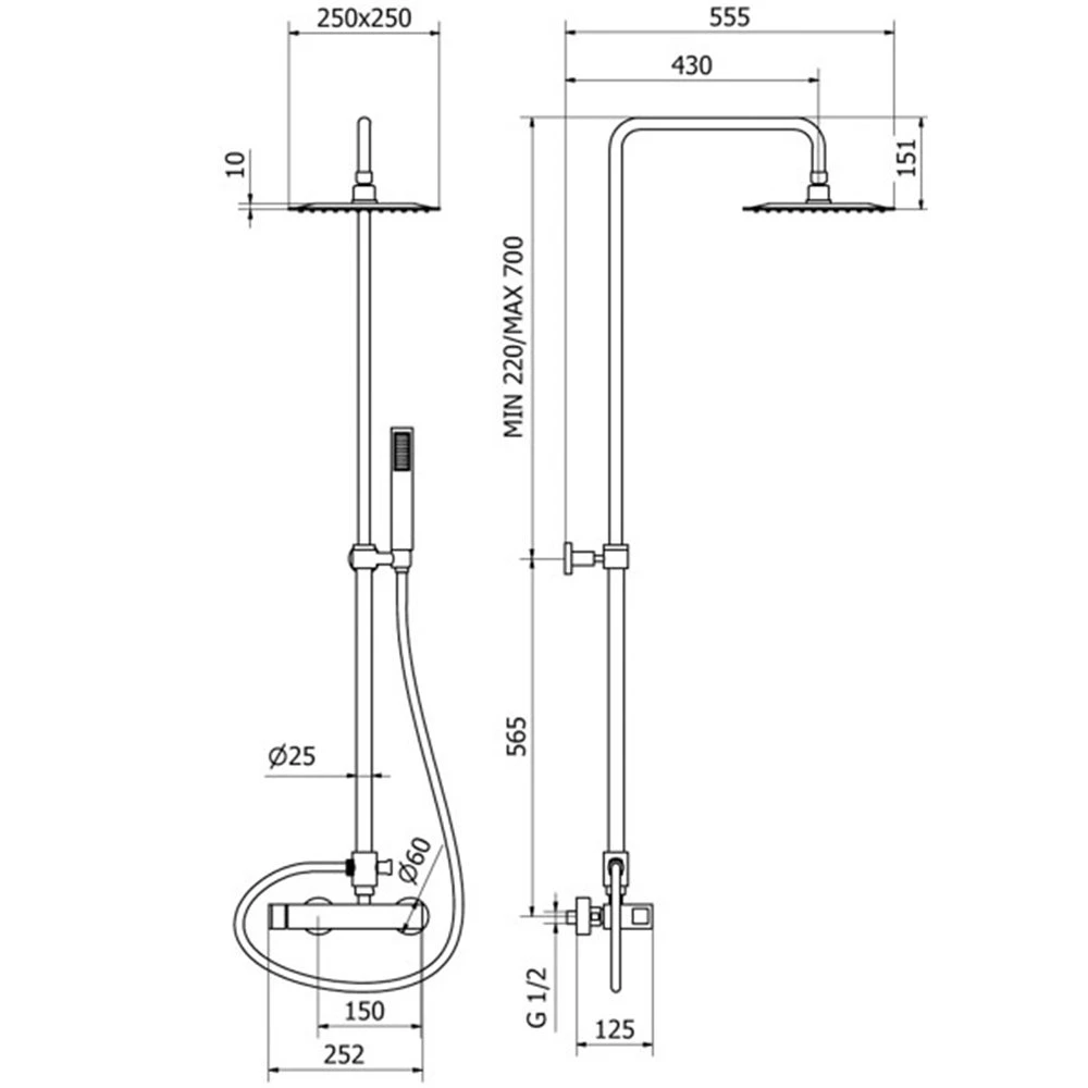 Σύστημα ντούζ αναμεικτικό OTTONE MELODA SQUARE 15271 Χρωμέ