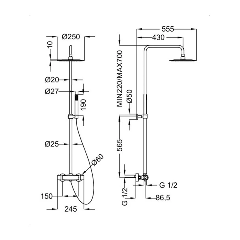 Σύστημα ντούζ θερμοστατικό OTTONE MELODA AIR 15250 Χρωμέ
