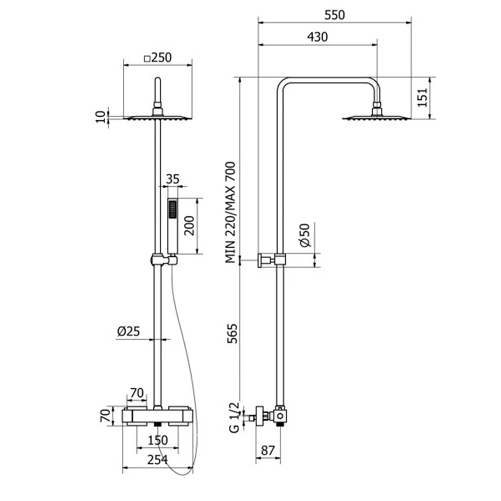 Σύστημα ντούζ θερμοστατικό OTTONE MELODA SQUARE 15252 Χρωμέ