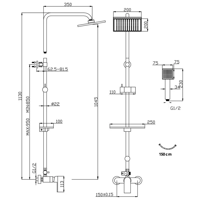 Θερμοστατική μπαταρία σταθερού ντους FERRO ALGEO SQUARE NP74-BAQ7U
