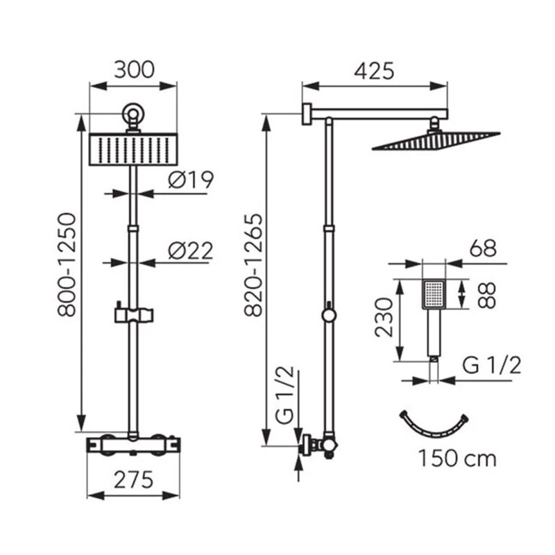 • ρυθμιζόμενο μήκος μεταλλικής ράβδου 800 – 1250 mm